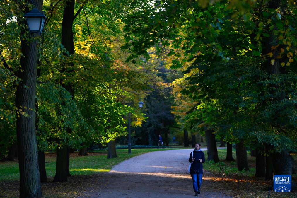 10月16日,一名女子在波兰首都华沙的瓦津基公园内散步。