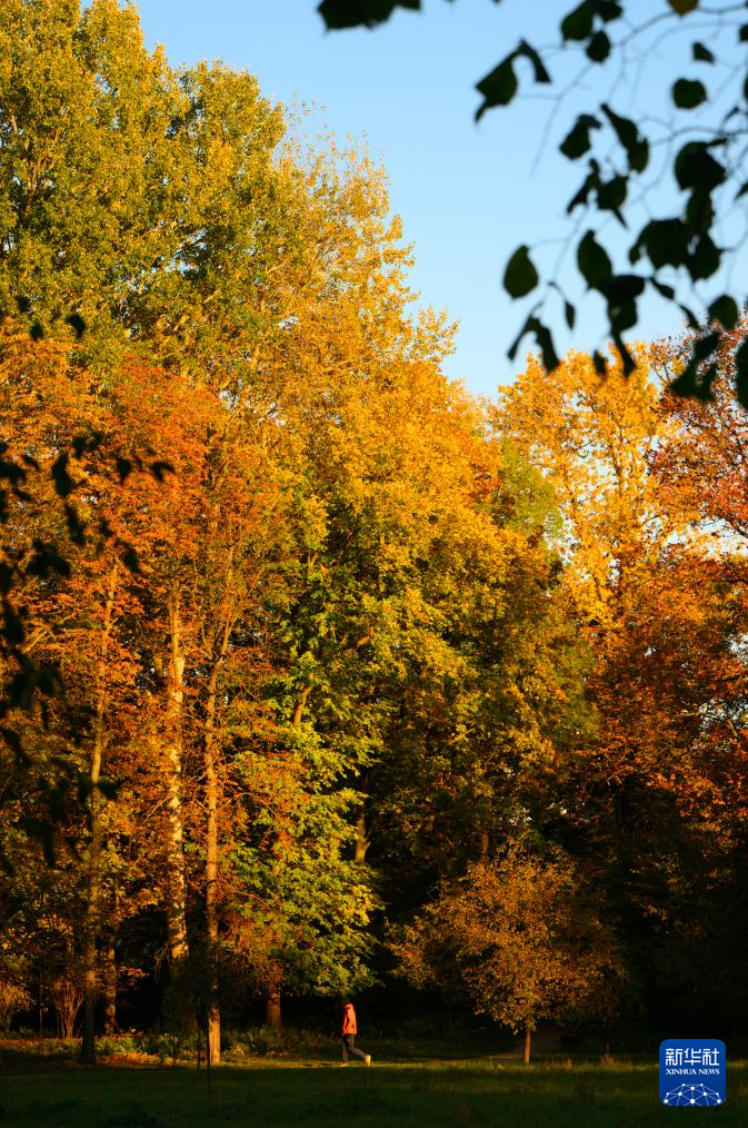 10月16日,一名男子在波兰首都华沙的瓦津基公园内散步。