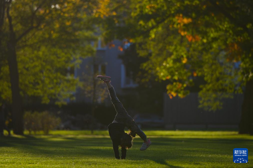 10月16日,一名女孩在波兰首都华沙的瓦津基公园内锻炼。