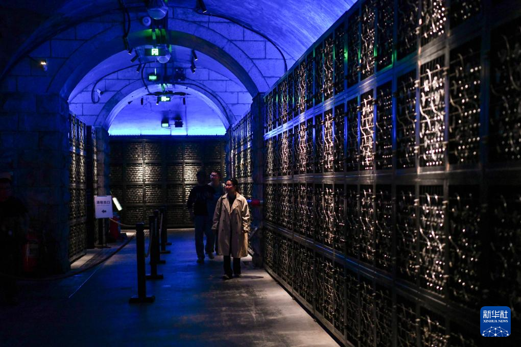 10月17日,参观者在位于山东烟台的张裕酒文化博物馆张裕百年酒窖内参观。