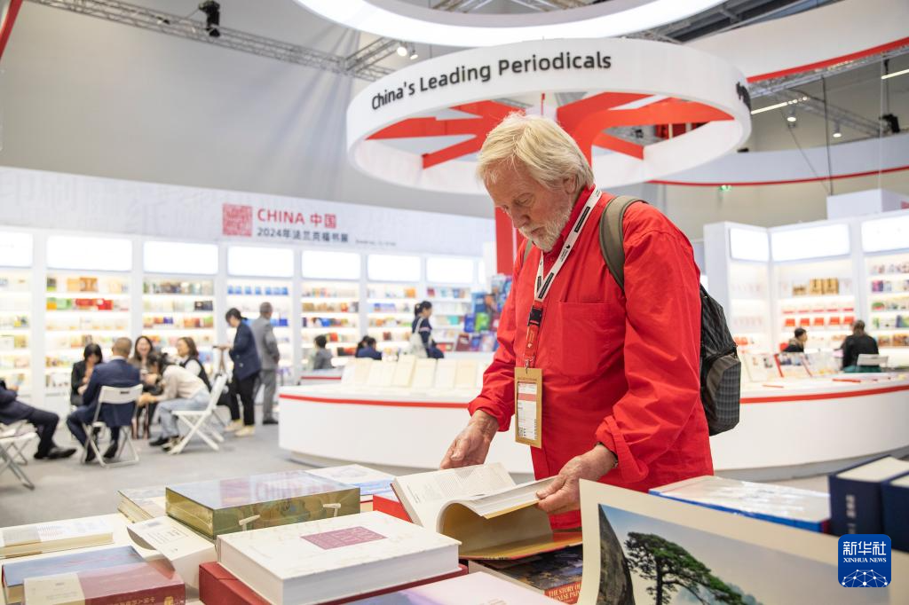10月17日,一名参观者在德国法兰克福书展中国联合展台翻阅图书。