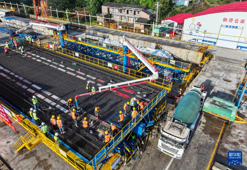 当日,渝万高铁万州段首榀预制箱梁在中铁十一局渝万高铁万州响水镇制梁场顺利浇筑完成,标志着渝万高铁万州段箱梁预制工作正式启动,为后续架梁及桥梁上部结构施工奠定坚实基础。