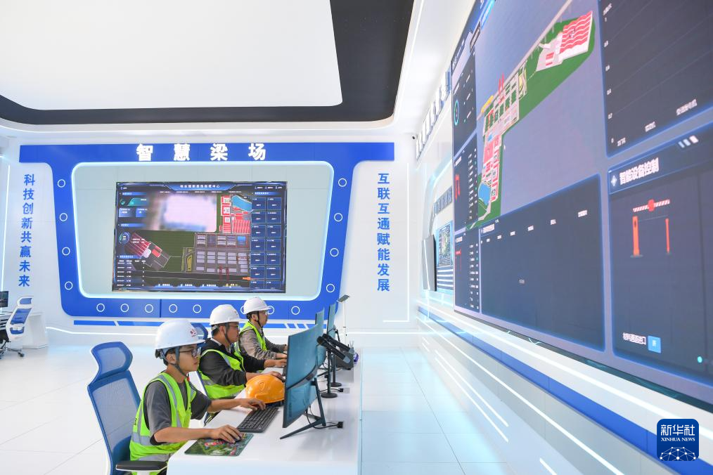 10月18日,工人在中铁十一局渝万高铁万州响水镇制梁场智控中心作业。