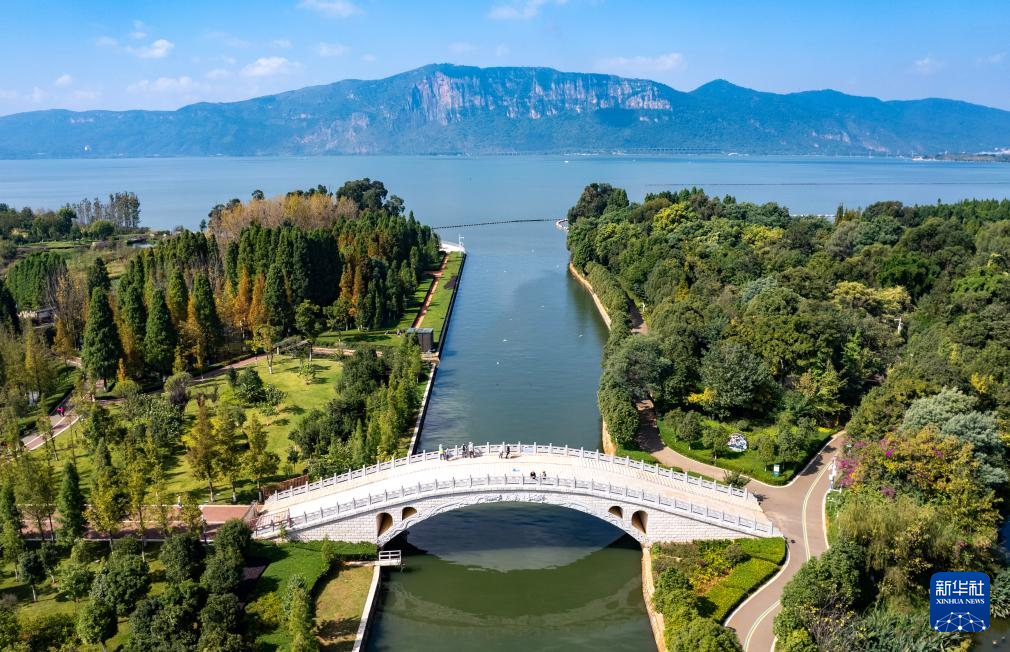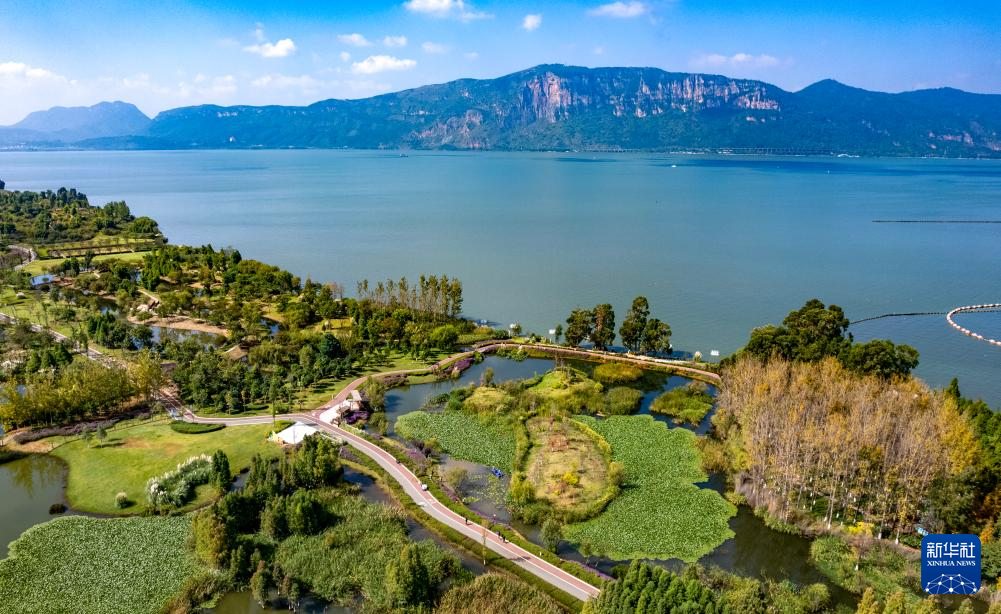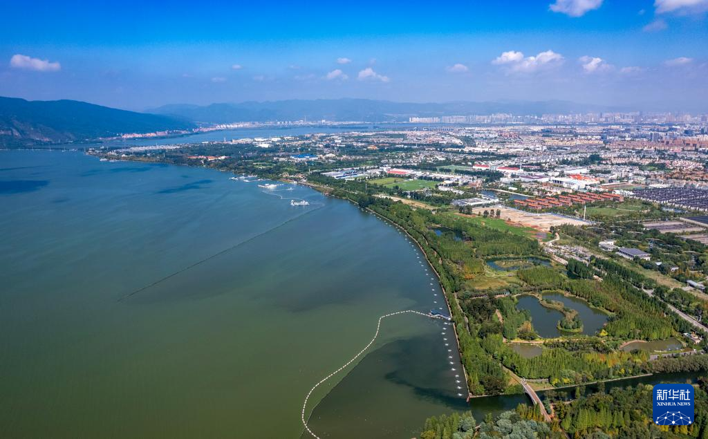 这是10月18日拍摄的滇池及星海半岛湿地公园(无人机照片)。