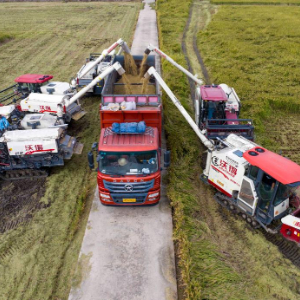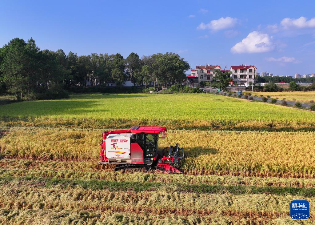 10月17日,在江西省吉安市泰和县塘洲镇洲头村,农民驾驶收割机抢收水稻。