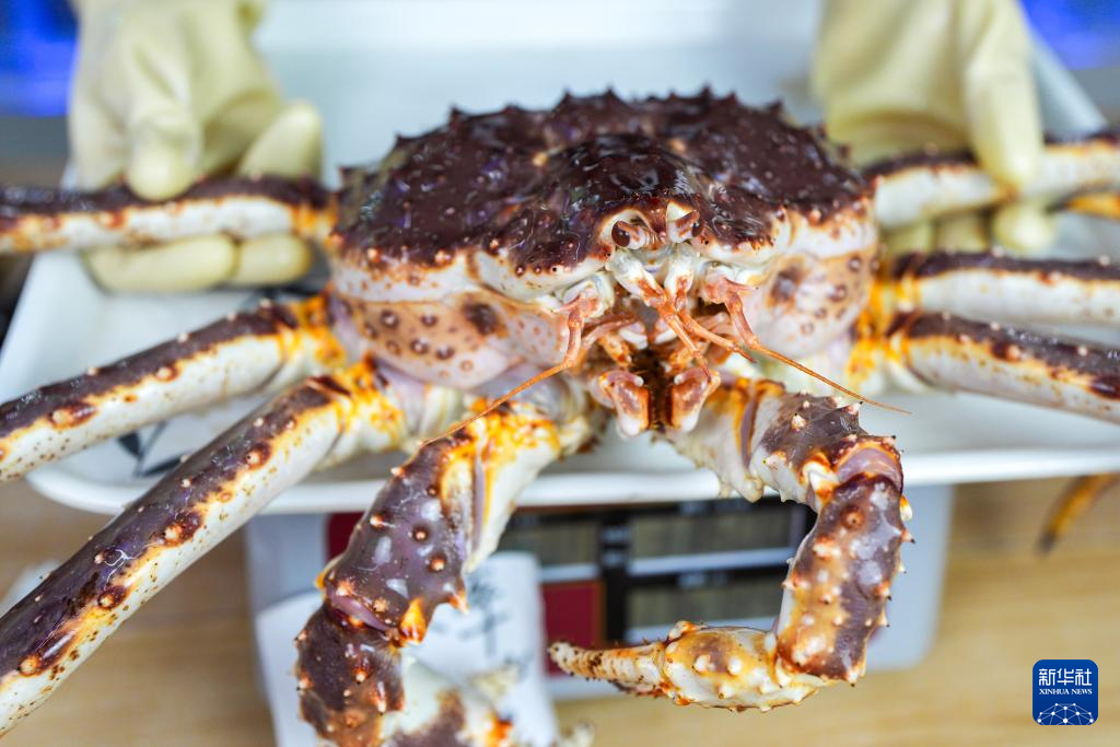 俄罗斯帝王蟹丰富了中国人的餐桌,也带动了中俄边境地区的合作与发展。在位于珲春的东北亚跨境电商产业园,一家占地超过1000平方米的帝王蟹保税店于今年年初正式开业。该店负责人王海说,他们与俄罗斯蟹业集团深度合作,深海捕捞的帝王蟹“原车原水原货”发到店里,“个儿大、鲜美,价格实惠”。开业以来,保税店人流不断,“最高峰时每天能接待上万人”。