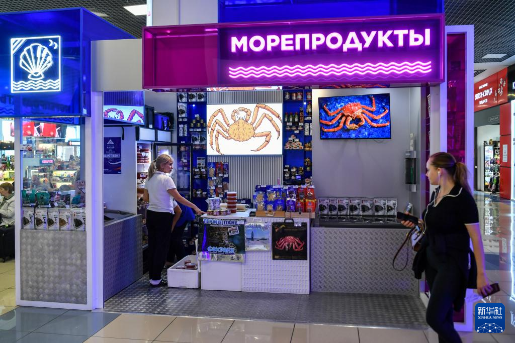 这是9月6日在俄罗斯符拉迪沃斯托克机场拍摄的海鲜商店。