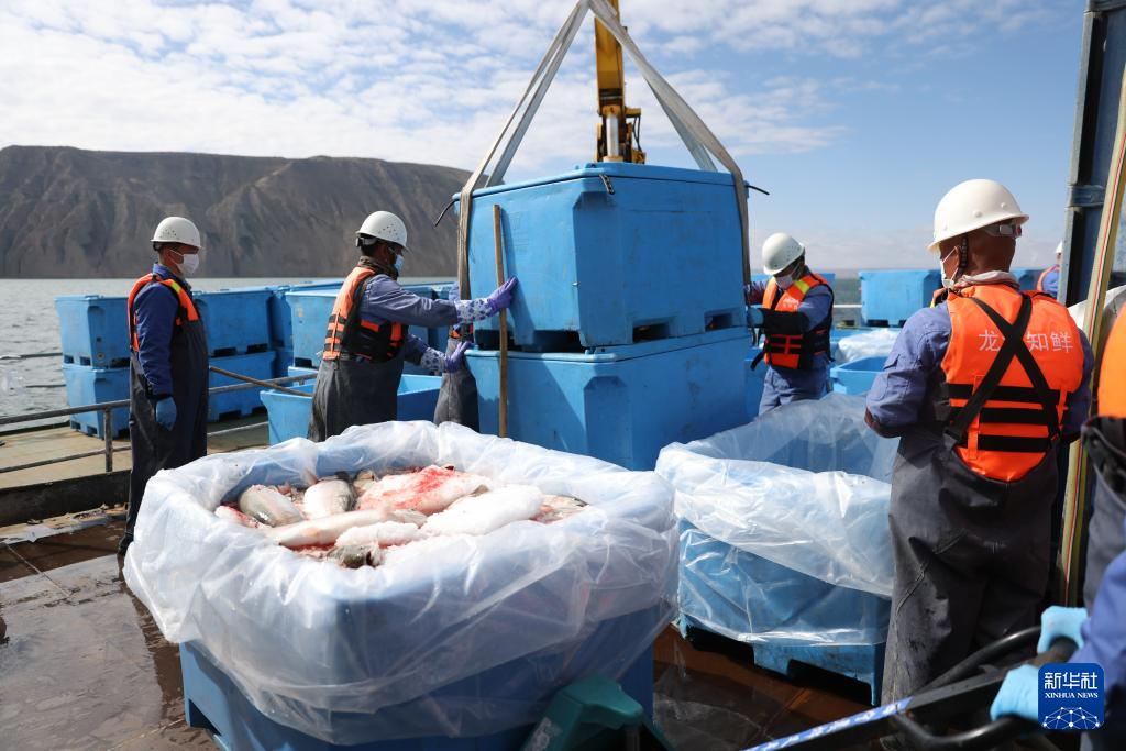 10月18日,龙洋知鲜(青海)股份有限公司员工吊装冷水鱼。