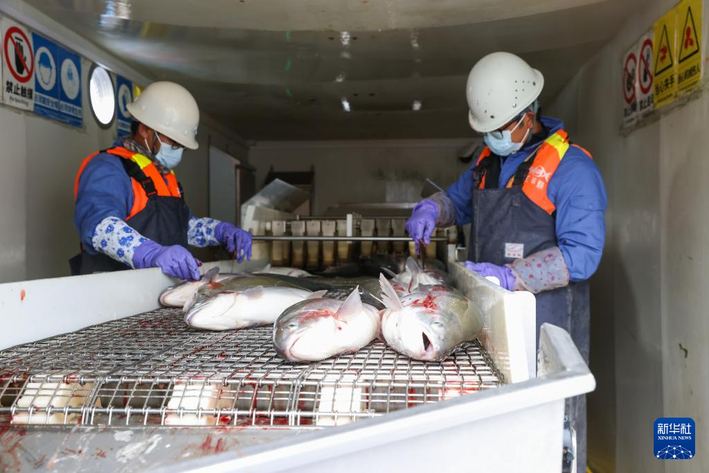 10月18日,龙洋知鲜(青海)股份有限公司员工处理冷水鱼。