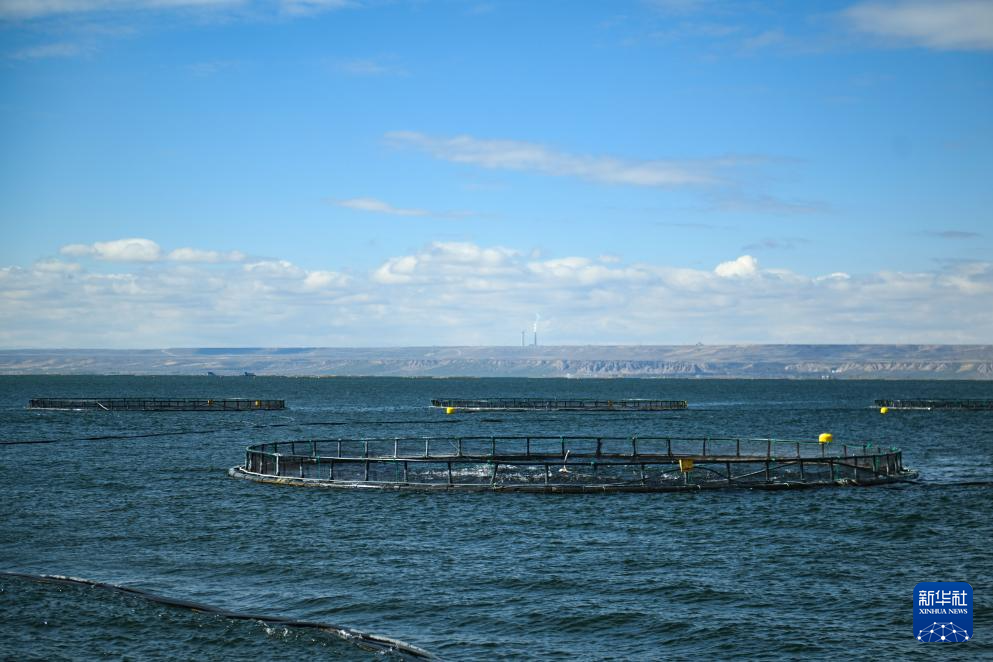 这是10月18日拍摄的龙洋知鲜(青海)股份有限公司养殖网箱。