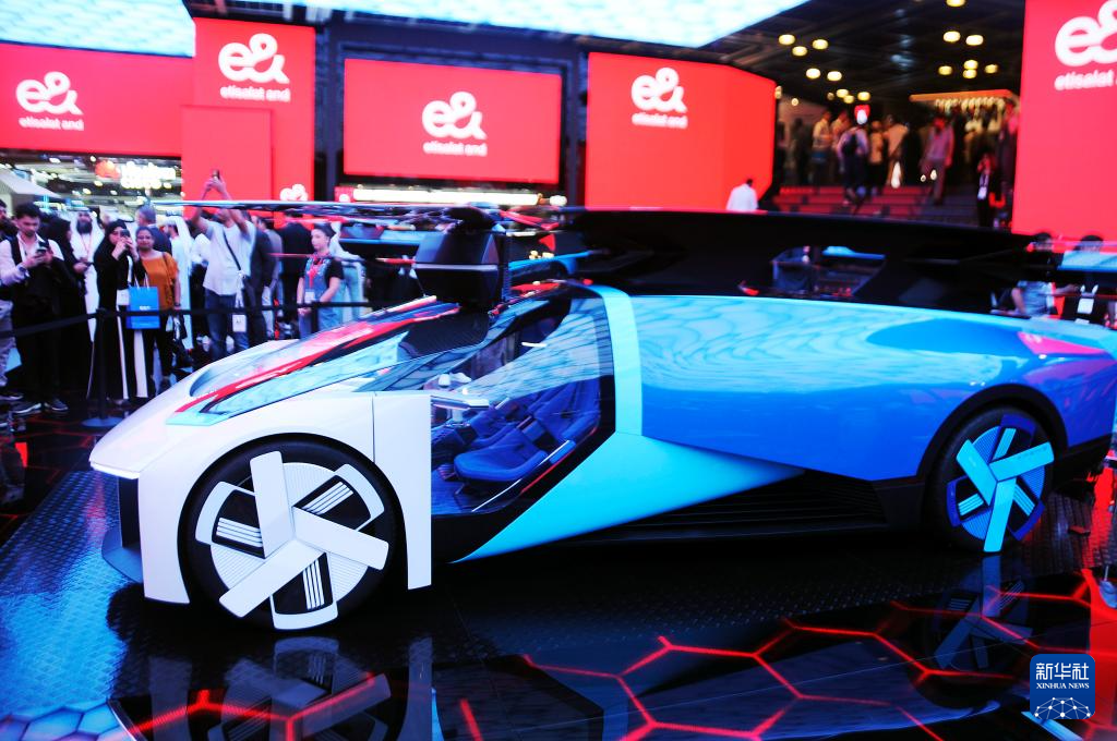 这是10月17日在阿联酋迪拜第44届海湾信息和通信技术展现场拍摄的小鹏汇天的“陆空一体”飞行汽车。