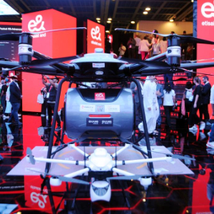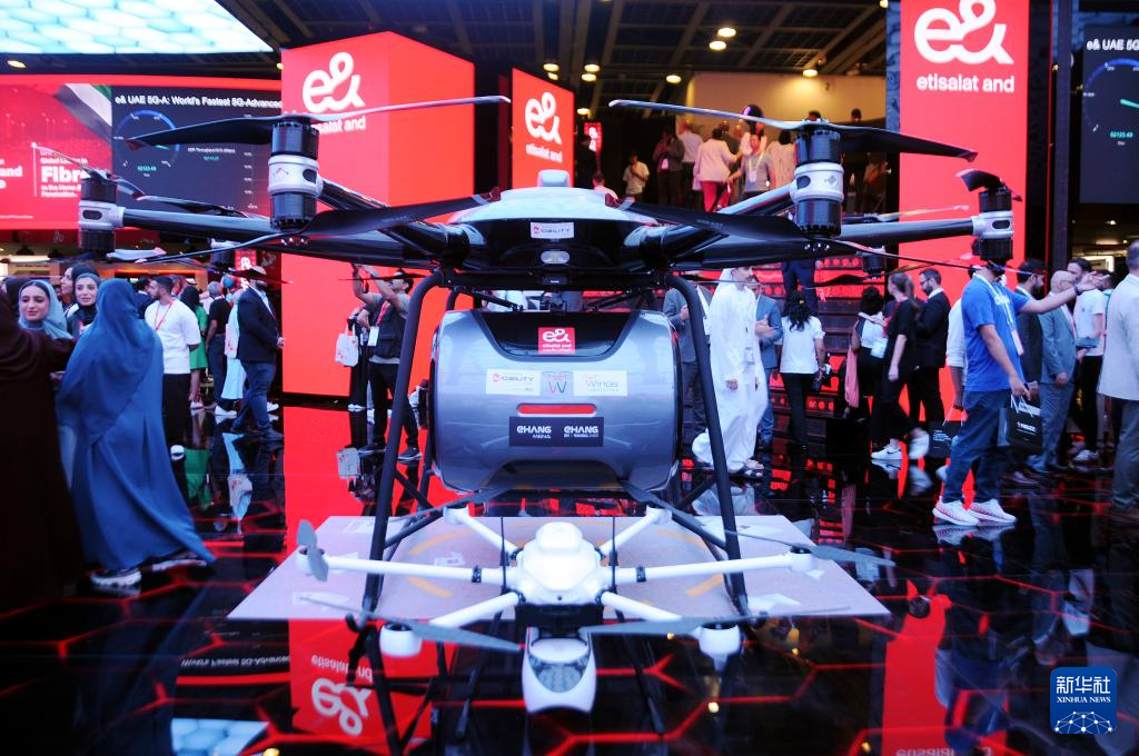这是10月17日在阿联酋迪拜第44届海湾信息和通信技术展现场拍摄的亿航智能无人驾驶航空器。