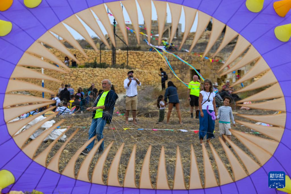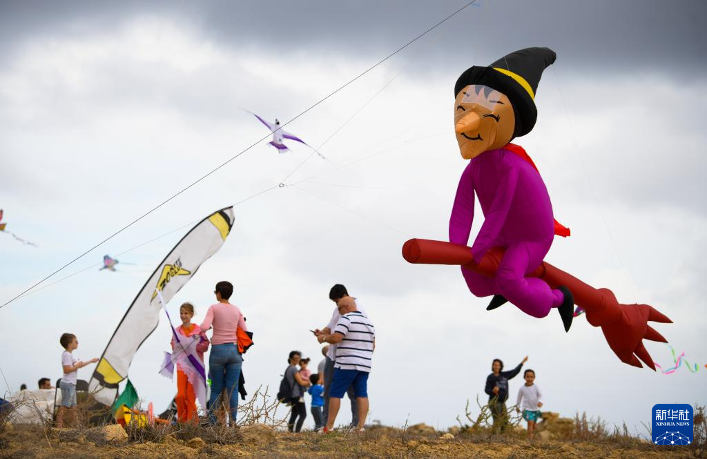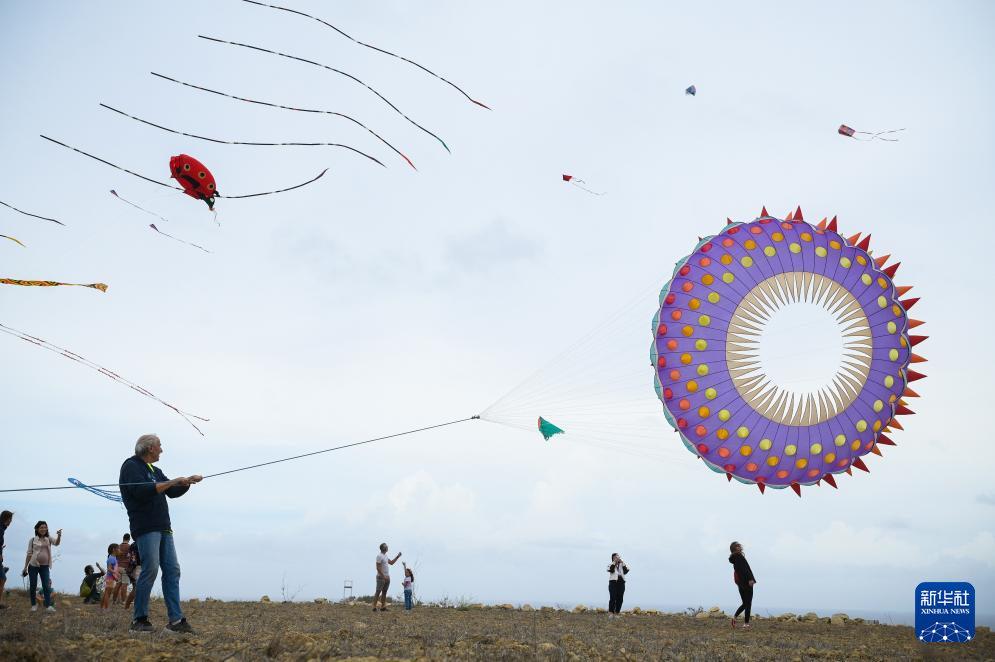 10月19日,在马耳他戈佐岛阿尔卜,人们在第7届戈佐国际风筝节上放风筝。
