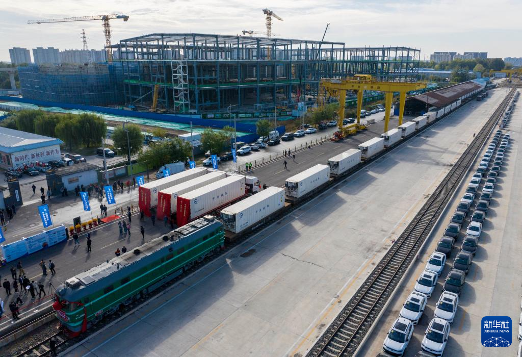 10月20日,中老铁路(万象—昆明—北京·平谷)国际冷链专列停靠在北京市平谷区京平综合物流枢纽。