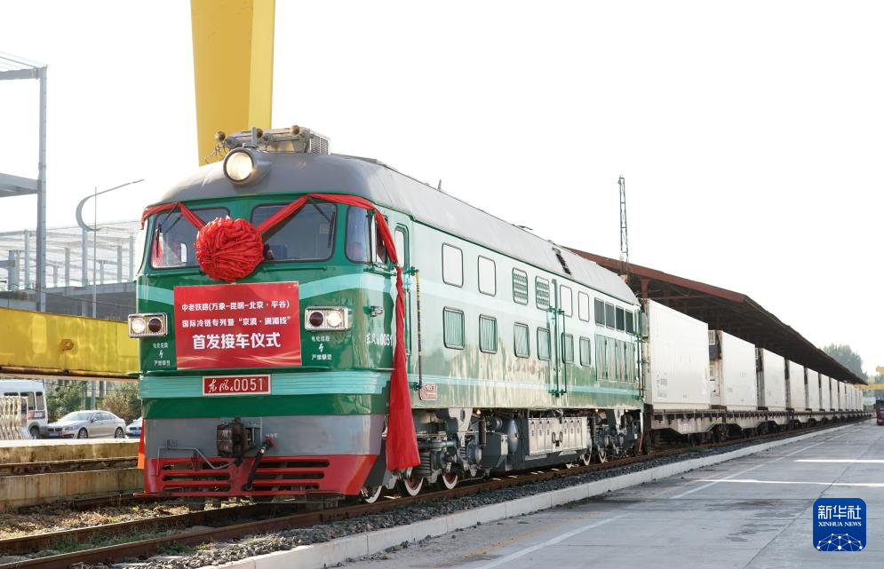当日,首趟中老铁路(万象—昆明—北京·平谷)国际冷链专列暨“京滇·澜湄线”抵达北京市平谷区京平综合物流枢纽,首发接车仪式同期举行。据了解,本趟国际货运班列10月12日从老挝万象南站驶出,运载着产自老挝的390吨优质香蕉,由磨憨口岸入境,通过全程冷链运输抵达北京。