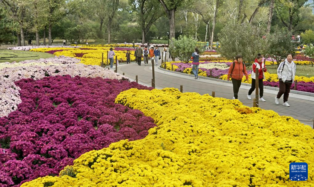 10月20日,市民游客在位于北京市的国家植物园内观赏盛开的秋菊。