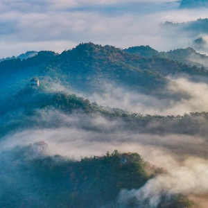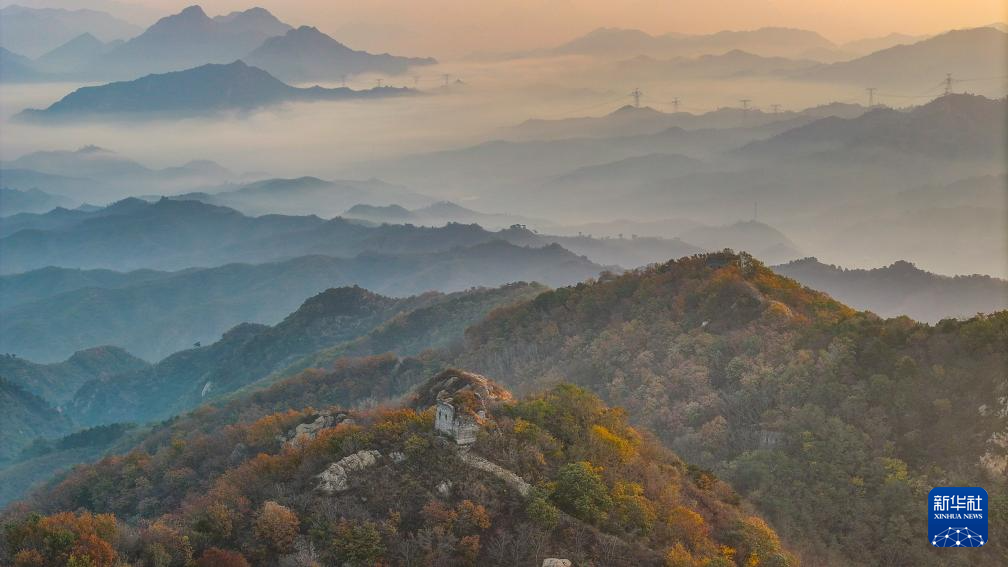 秋日的早晨,河北省遵化市小厂乡云雾飘渺,晨光中的古长城、五彩斑斓的秋叶,交相辉映,壮美如画。