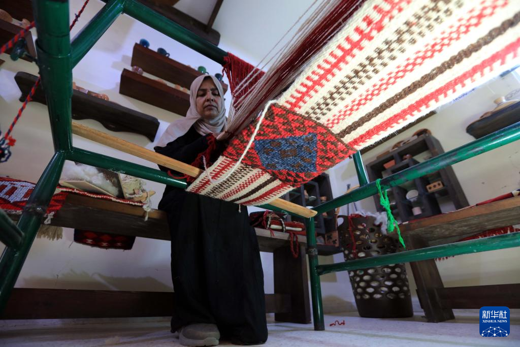 10月11日,在约旦瓦迪拉姆,贝都因人芭希特·扎维达展示如何织“毛屋”。