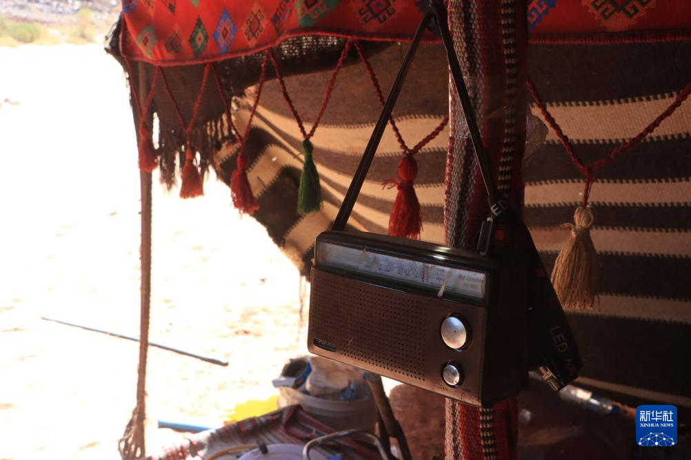 这是10月11日在约旦瓦迪拉姆一处贝都因人居住的“毛屋”里拍摄的收音机。