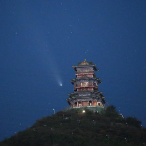 10月22日,紫金山-阿特拉斯彗星飞过北京定都阁。