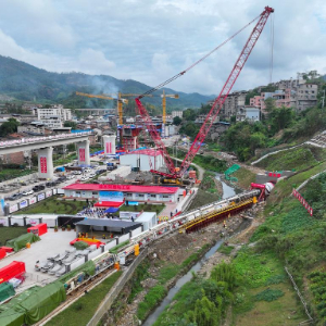 西渝高铁合川东隧道位于重庆市合川区清平镇,全长7388米,该隧道设置进口、进口斜井、出口斜井、出口及进出口泄水洞等6个作业面。为满足总体工期要求,施工单位根据地层特点,在泄水洞作业面采用了盾构法施工。合川东隧道出口泄水洞盾构机总长120米,总重约280吨,盾构机的成功始发,为我国高铁建设小断面辅助坑道穿越特殊地理条件提供了宝贵经验。