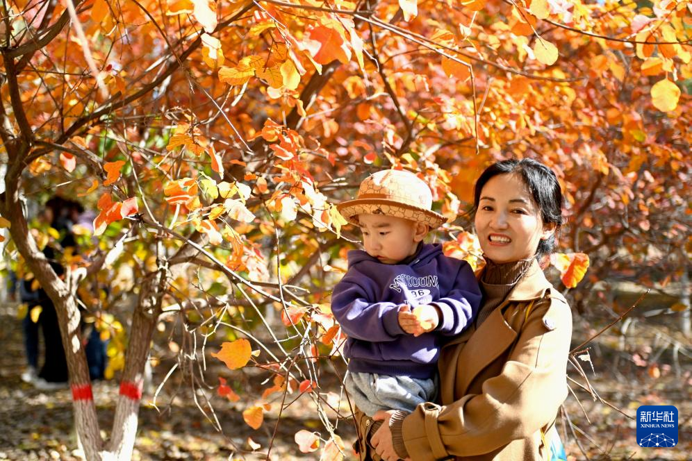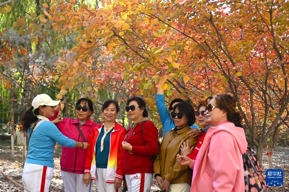 10月22日,人们在银川市森林公园游览。