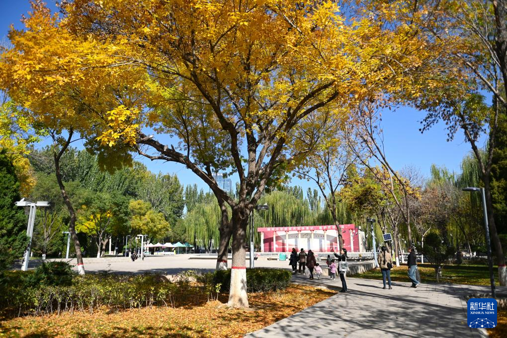 10月22日,人们在银川市凤凰公园游览。
