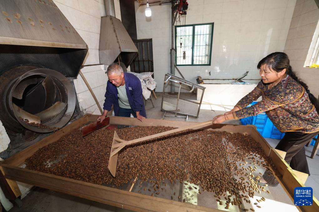 10月24日,东白湖镇里四村的香榧种植者在炒制香榧。