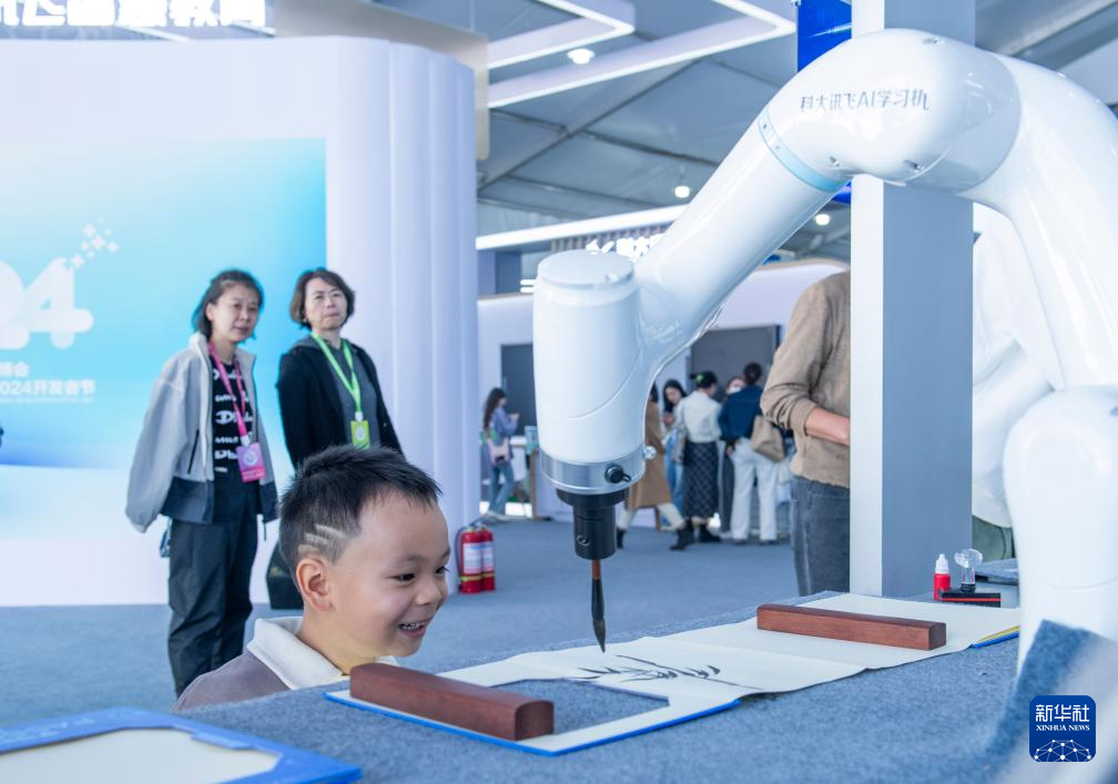 当日,第七届世界声博会暨2024科大讯飞全球1024开发者节在合肥开幕。本届声博会为期4天,同期举办人工智能产品创新展,设置科技馆、工业馆、教育馆、生活馆等8个主题展馆。前沿人工智能技术与产品亮相展会,吸引不少观众到场参观体验,了解人工智能在工业、教育、休闲娱乐等领域的应用。