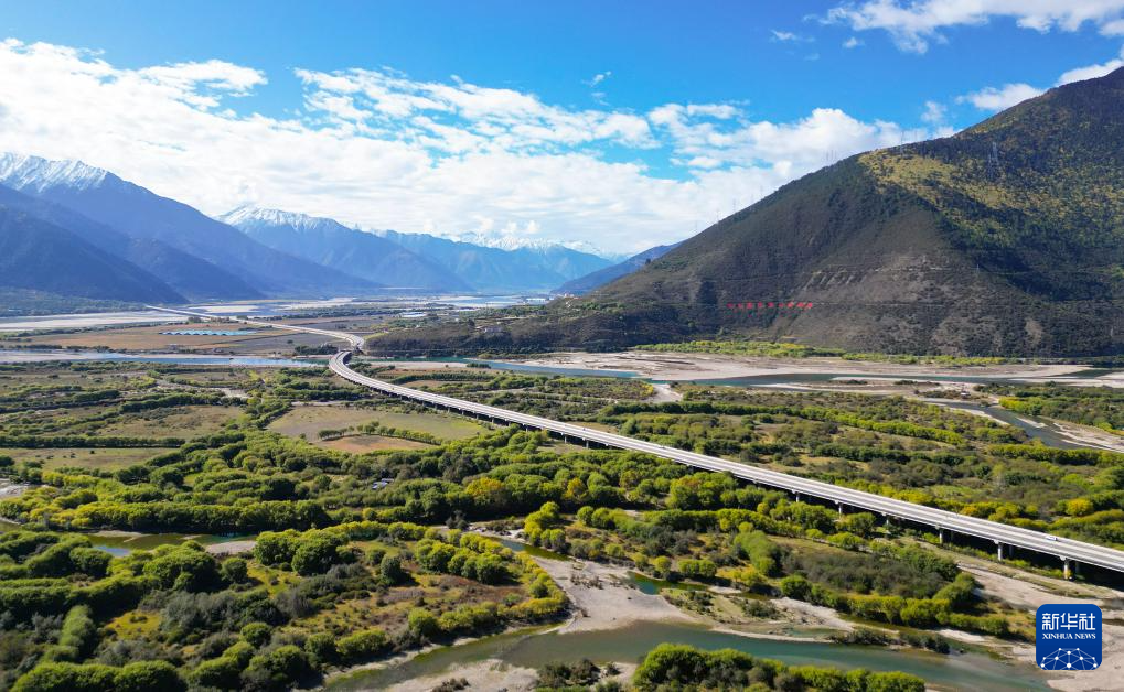这是在林芝雅尼国家湿地公园尼洋河畔拍摄的生态监测系统(10月24日摄,无人机照片)。