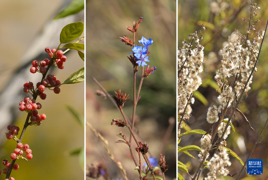 这是10月24日在西藏林芝雅尼国家湿地公园内拍摄的植物(拼版照片)。