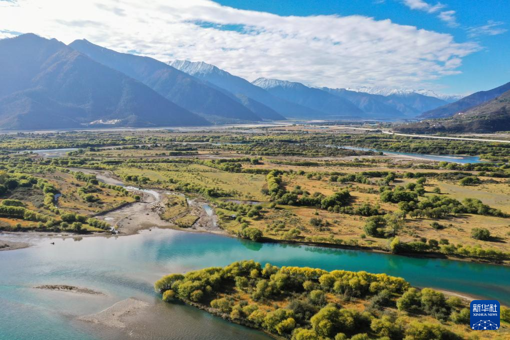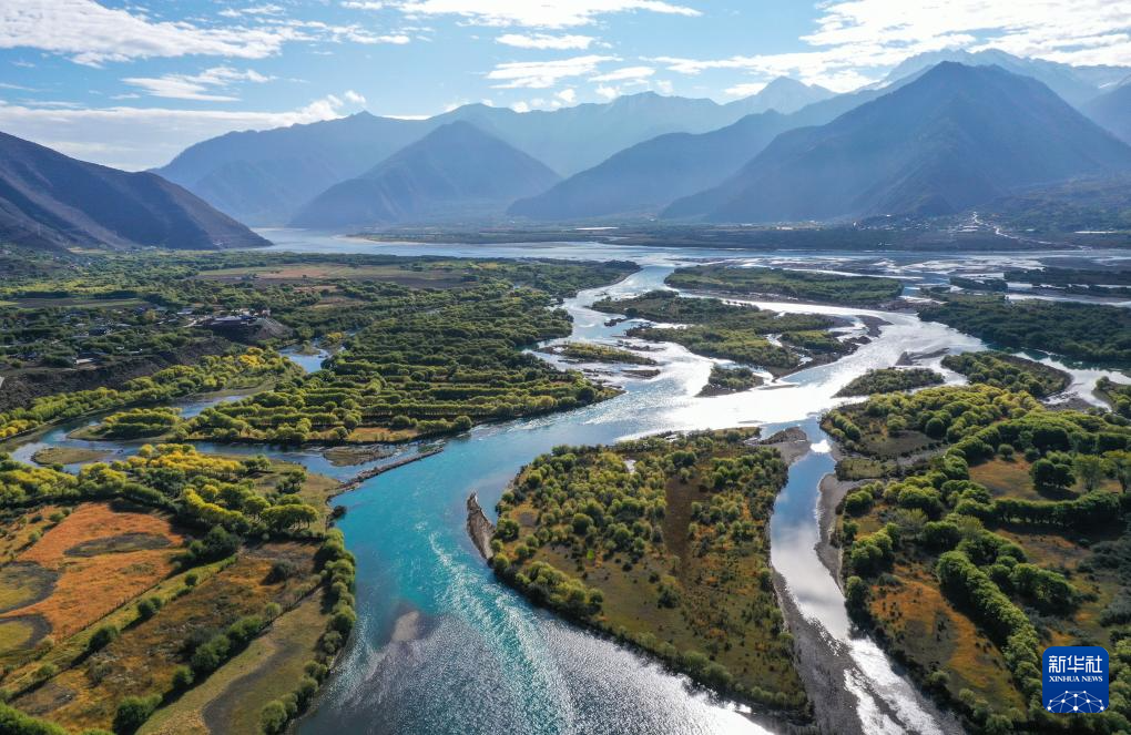 这是10月24日在西藏林芝雅尼国家湿地公园内拍摄的尼洋河(无人机照片)。