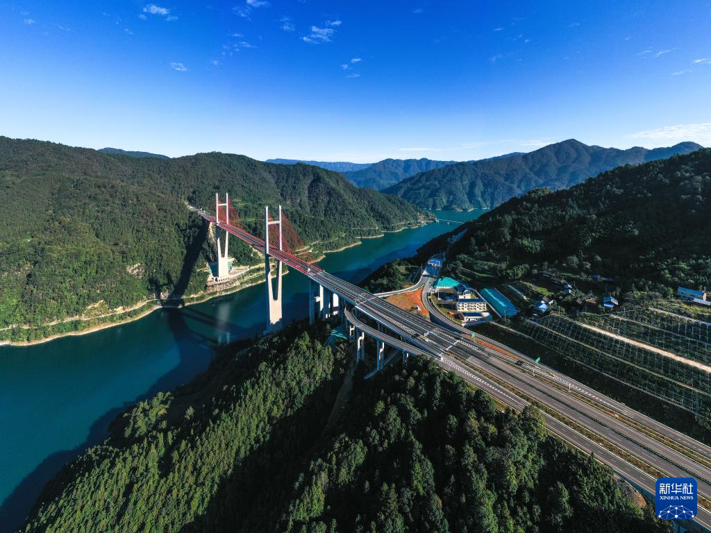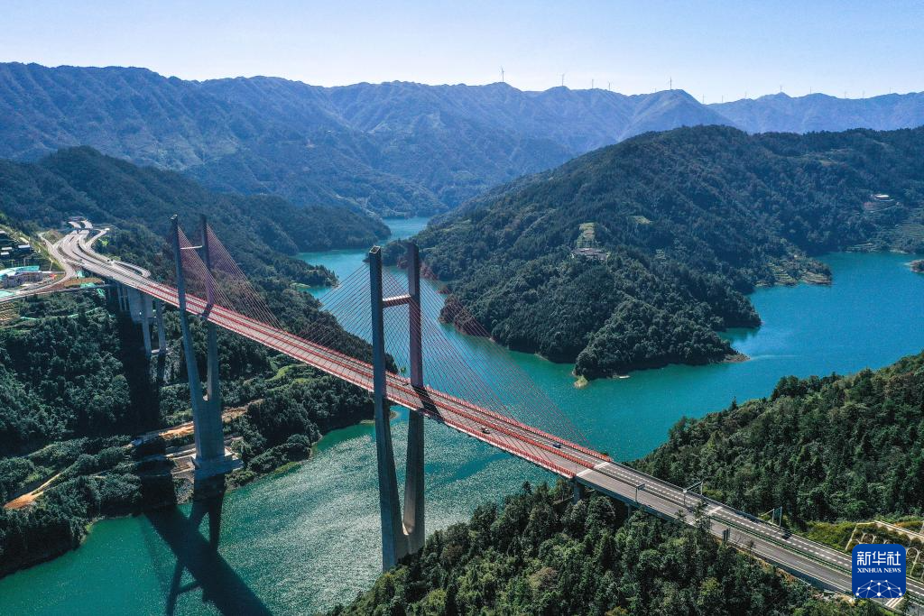 这是10月25日拍摄的贵州剑黎高速南孟溪大桥和南加互通(无人机照片)。