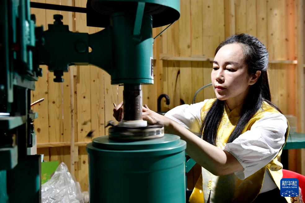 在日照高新区慧敏非遗工作室,非遗传承人秦慧敏在制作陶碗(5月26日摄)。