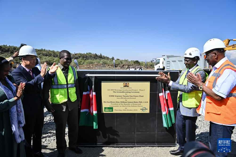 10月24日,在肯尼亚纳库鲁郡,肯尼亚总统威廉·鲁托(右二)出席开工仪式。