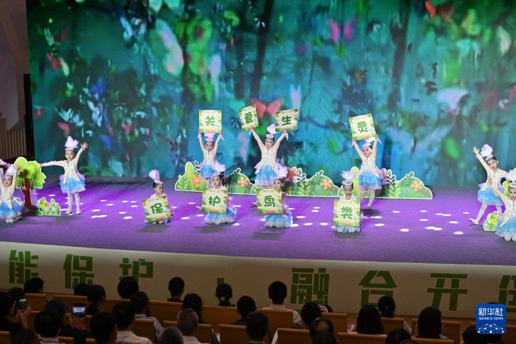 10月26日,小朋友在2024全国爱鸟周自然笔记总结暨福建省首届野生动物文化交流活动启动仪式上表演。