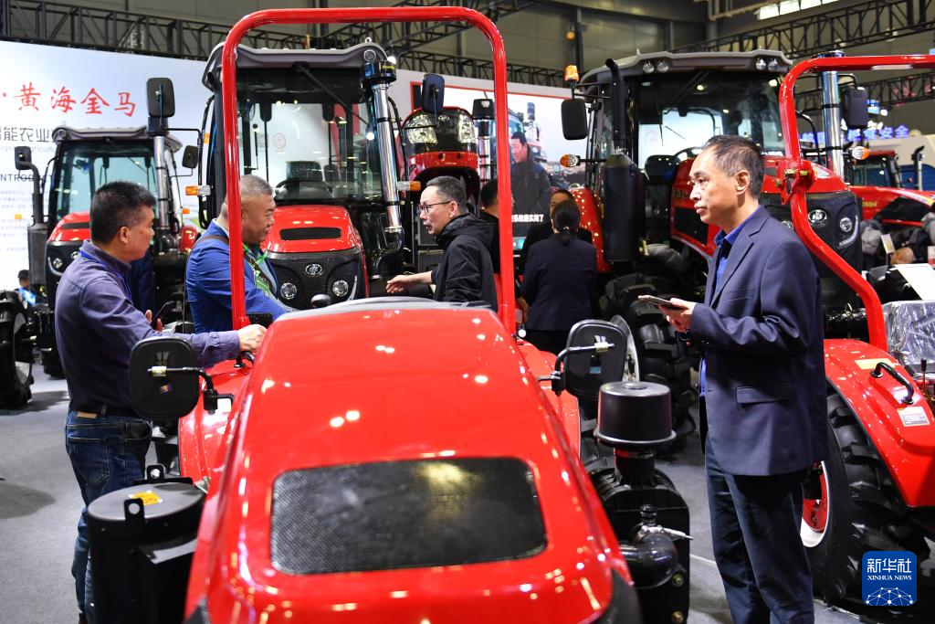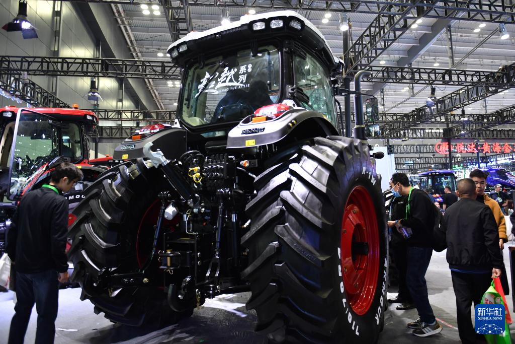 10月26日,观众在2024中国国际农业机械展览会上了解一款拖拉机。