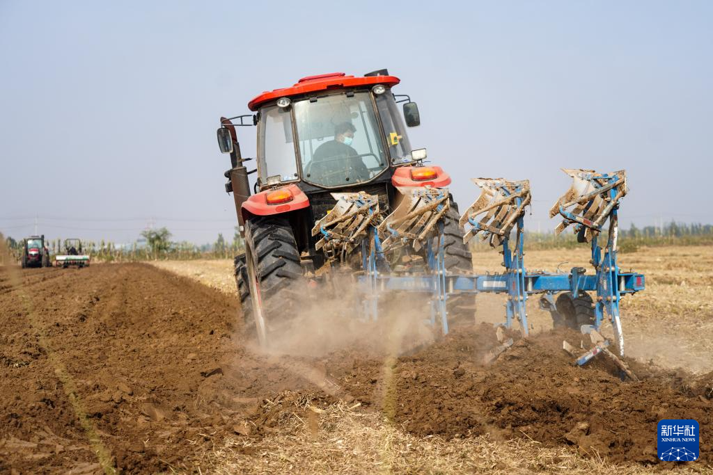 10月25日,在聊城市东昌府区闫寺街道辛王顺丰家庭农场,农机手驾驶农机深翻土地。