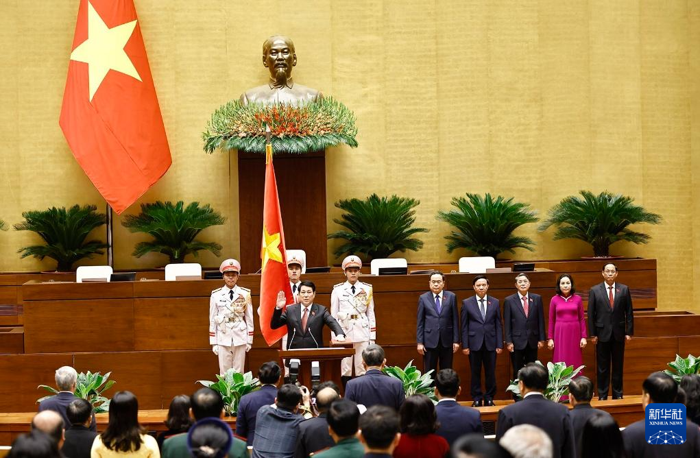 经越南第十五届国会第八次会议21日投票表决,越共中央政治局委员、中央书记处常务书记梁强当选新任越南国家主席。
