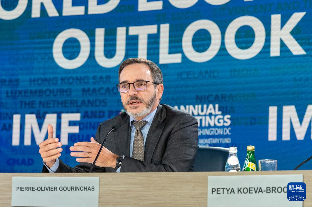 10月22日,在美国华盛顿,国际货币基金组织(IMF)首席经济学家皮埃尔-奥利维耶·古兰沙在《世界经济展望报告》媒体发布会上讲话。
