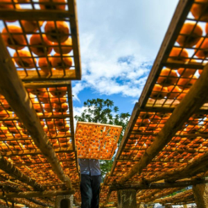 10月26日,在广西桂林市恭城瑶族自治县嘉会镇秧家村,柿农在晾晒柿子。