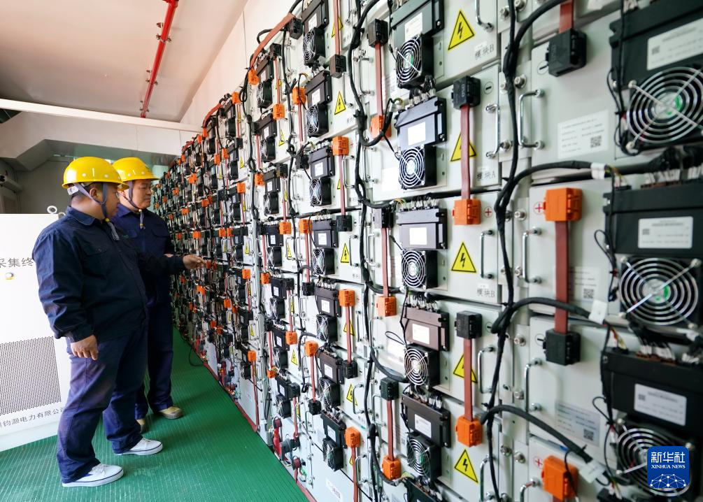 10月26日,工人在河北省涉县合漳乡10兆瓦级“水光储”智能微电网示范工程项目中的储能区巡检。