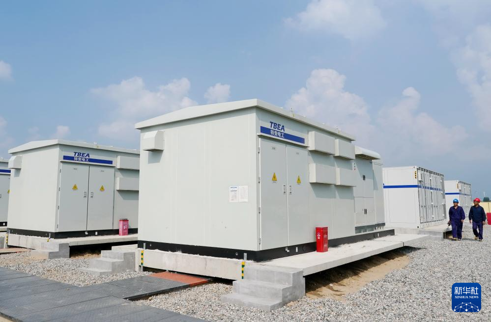 8月23日,工人在位于河北省故城县百兆瓦级储能电站巡检。