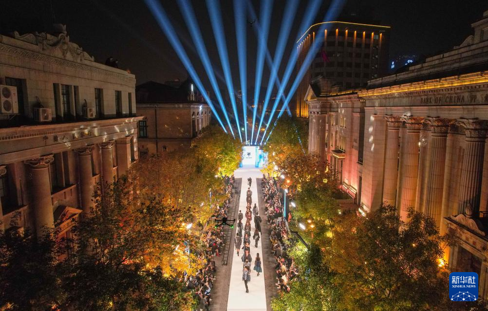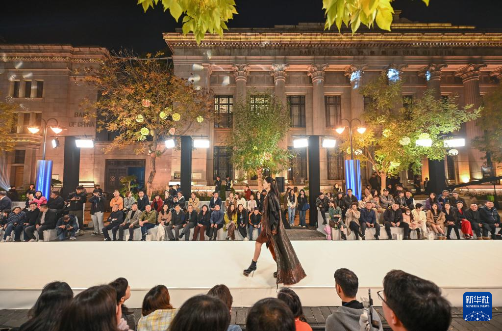 10月26日晚,“海河邂逅泰晤士”天津时尚秀在天津解放北路历史文化街区上演。时装秀以解放北路上的欧式建筑为背景,演绎了多位中国设计师的最新作品以及老字号国货品牌抵羊“知书达礼”系列服饰,在百年金融老街尽展历史文化与服装时尚之美。