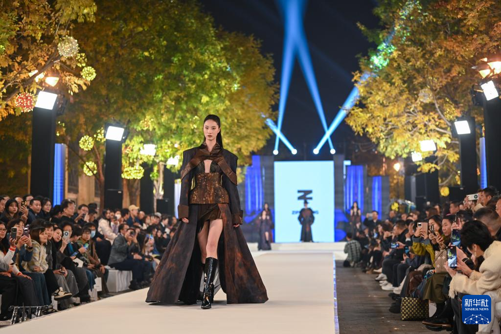 10月26日,模特在天津解放北路上搭起的T台走秀。