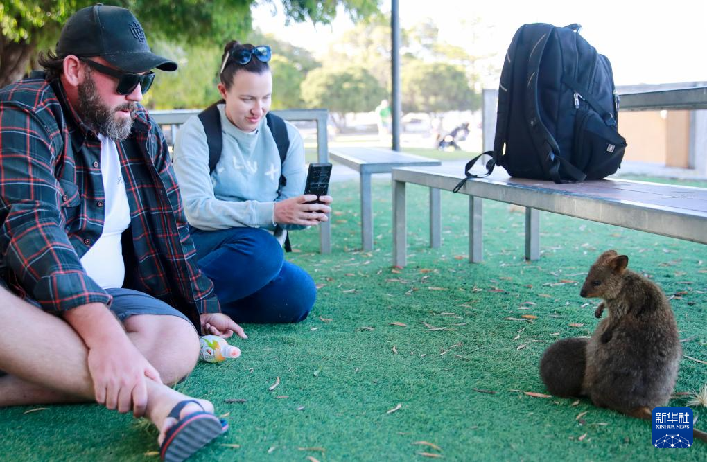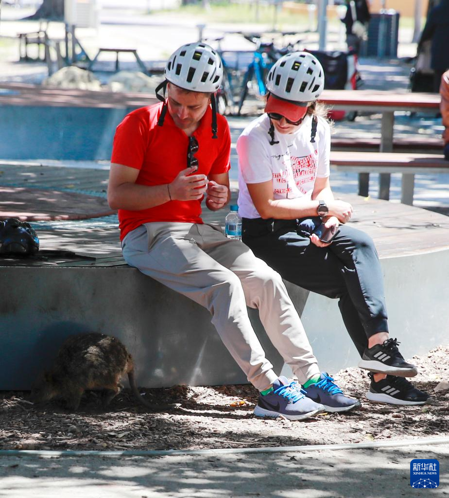 10月25日,游客在澳大利亚罗特内斯特岛上观看“微笑袋鼠”。