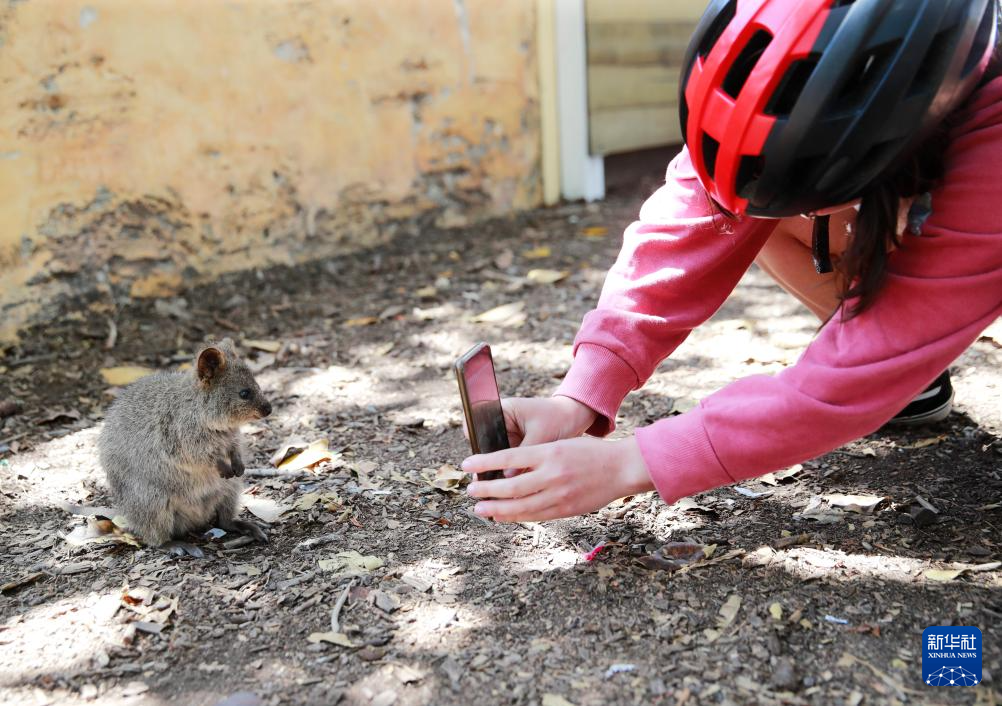 10月25日,游客在澳大利亚罗特内斯特岛上拍摄“微笑袋鼠”。