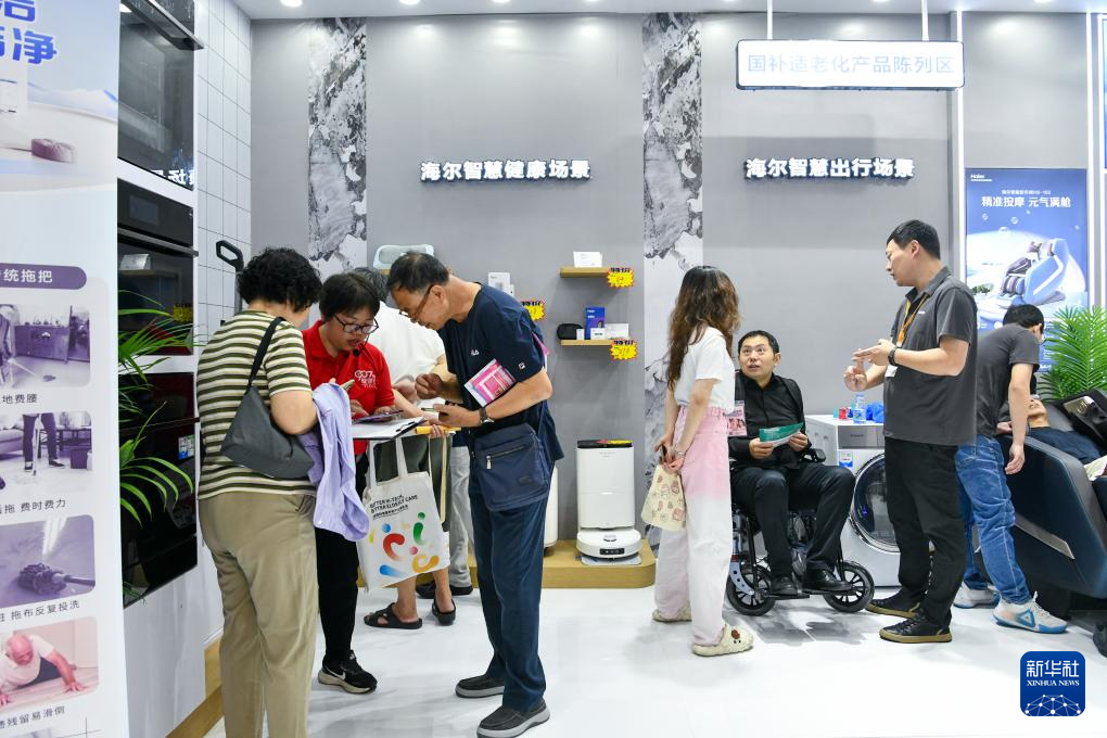 10月27日,老人在博览会上了解海尔智慧康养产品。