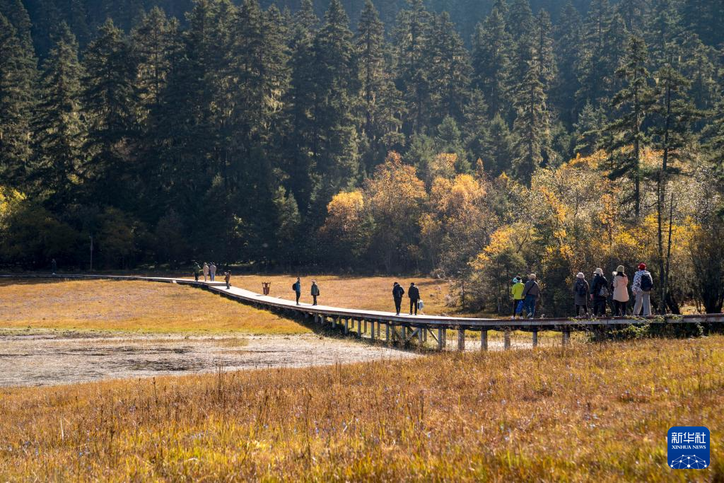 深秋时节,云南省迪庆藏族自治州普达措景区内层林尽染,景色宜人,高山草甸、原始森林、湖泊湿地构成了一幅美丽画卷。