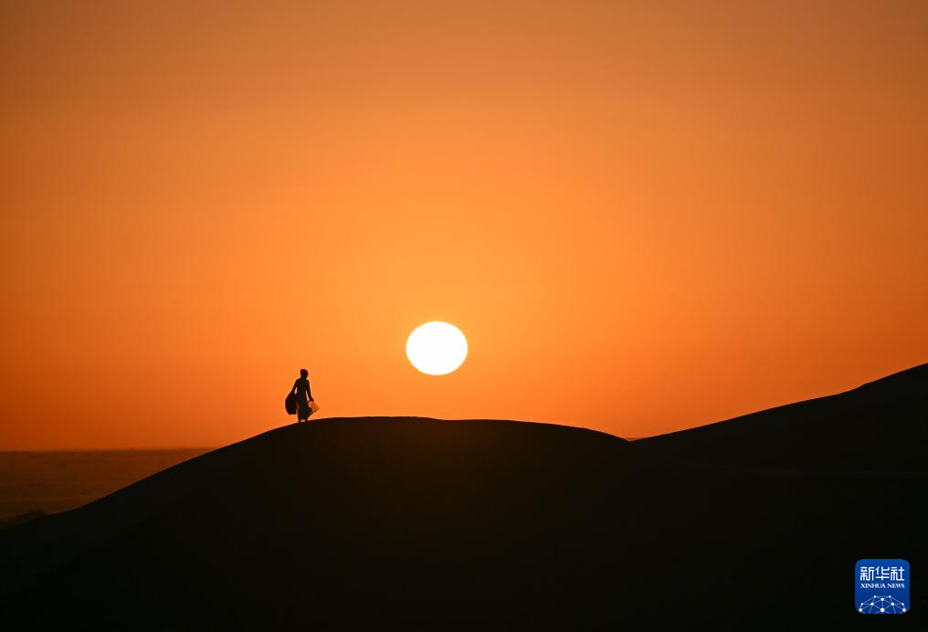 游客在新疆葫芦岛景区欣赏大漠日出(10月26日摄)。
